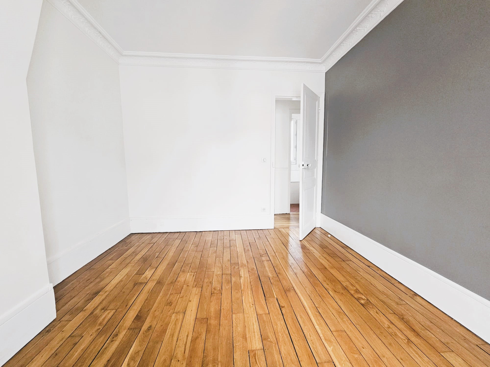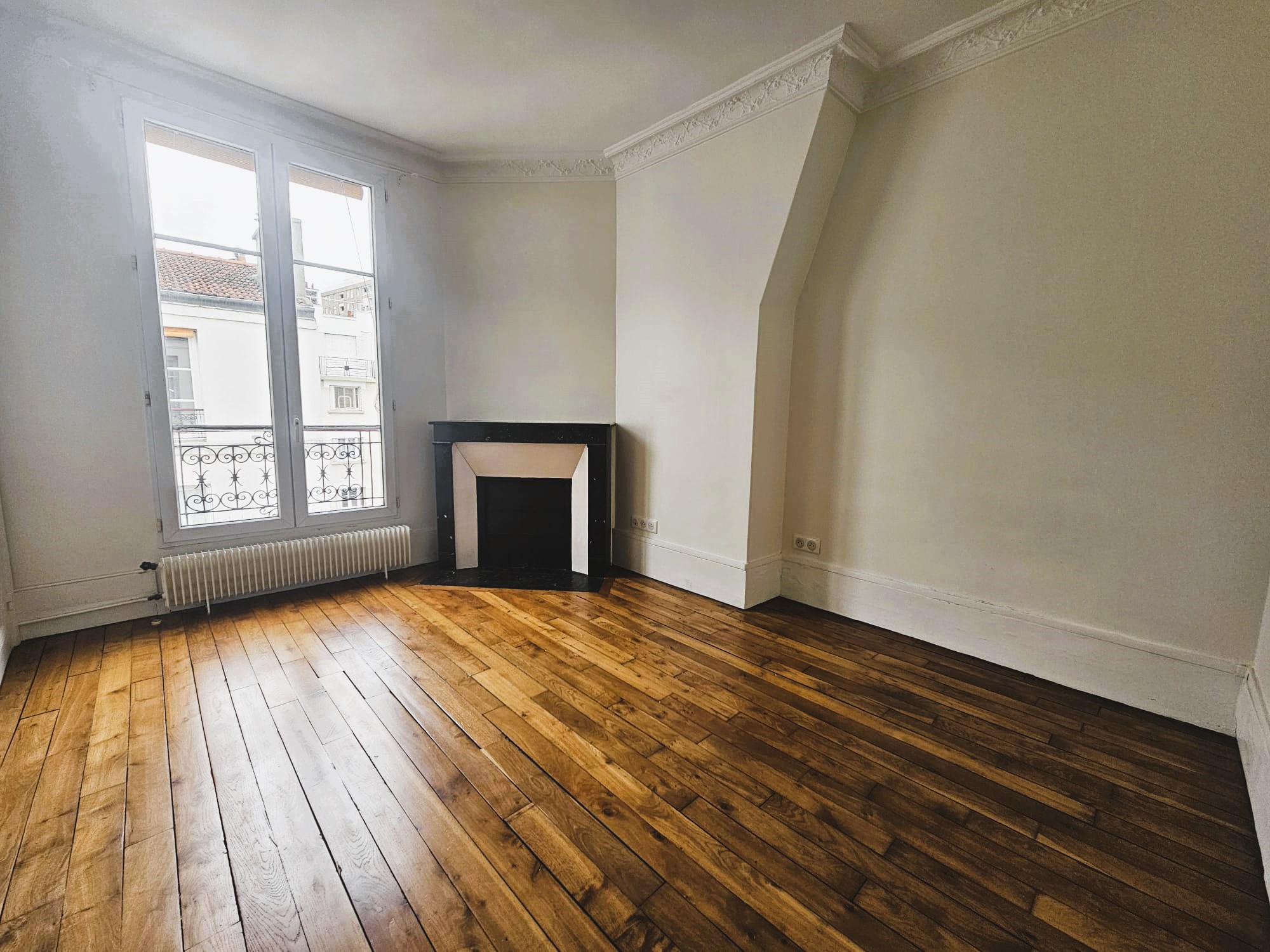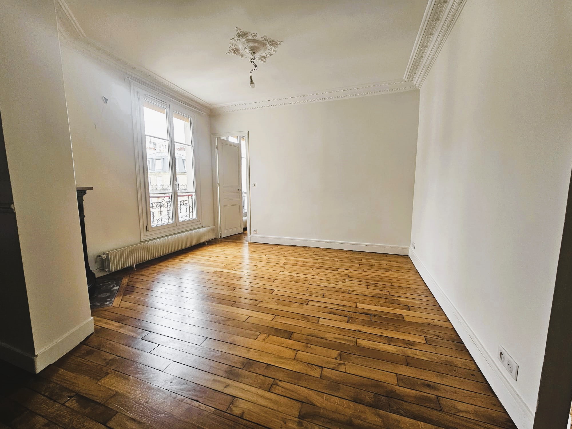 L’appartement présente une distribution classique et fonctionnelle, avec de beaux volumes et le charme de l’ancien (parquet, moulures, cheminée).