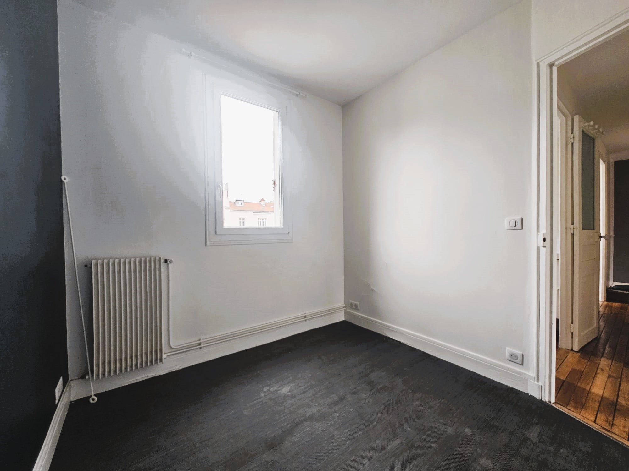 La seconde chambre (parquet / double vitrage), d’une surface de 6,64 m², donne sur rue.