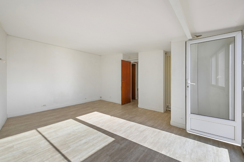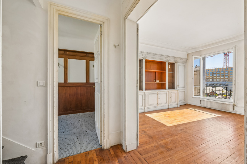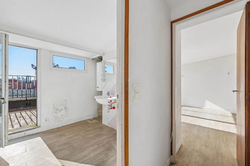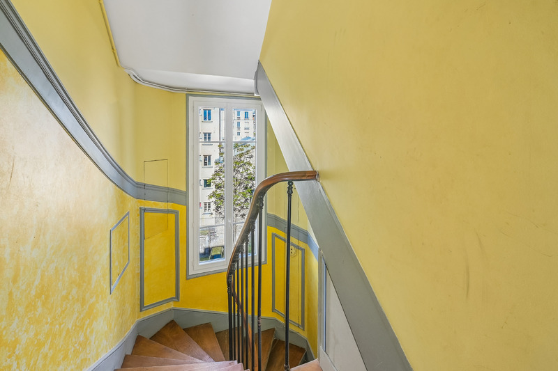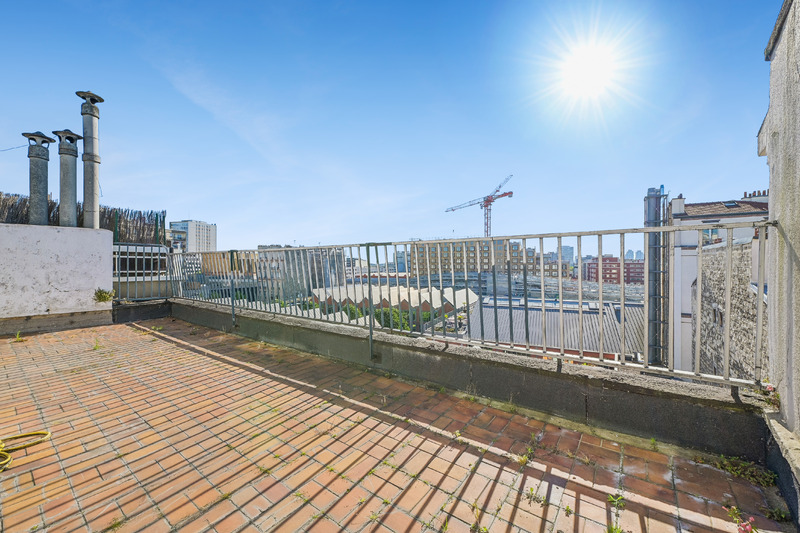 Situé aux 4ᵉ et 5ᵉ étages, l’appartement se compose, au premier niveau, d’un vaste séjour, d’une cuisine séparée à aménager, de deux chambres et d’une salle de bain avec toilettes. À l’étage supérieur, deux chambres supplémentaires, une salle d’eau, un wc séparé et l’accès direct et privatif à une grande terrasse sans vis‑à‑vis, exposée est, idéale pour profiter d’un espace extérieur rare à Paris.
