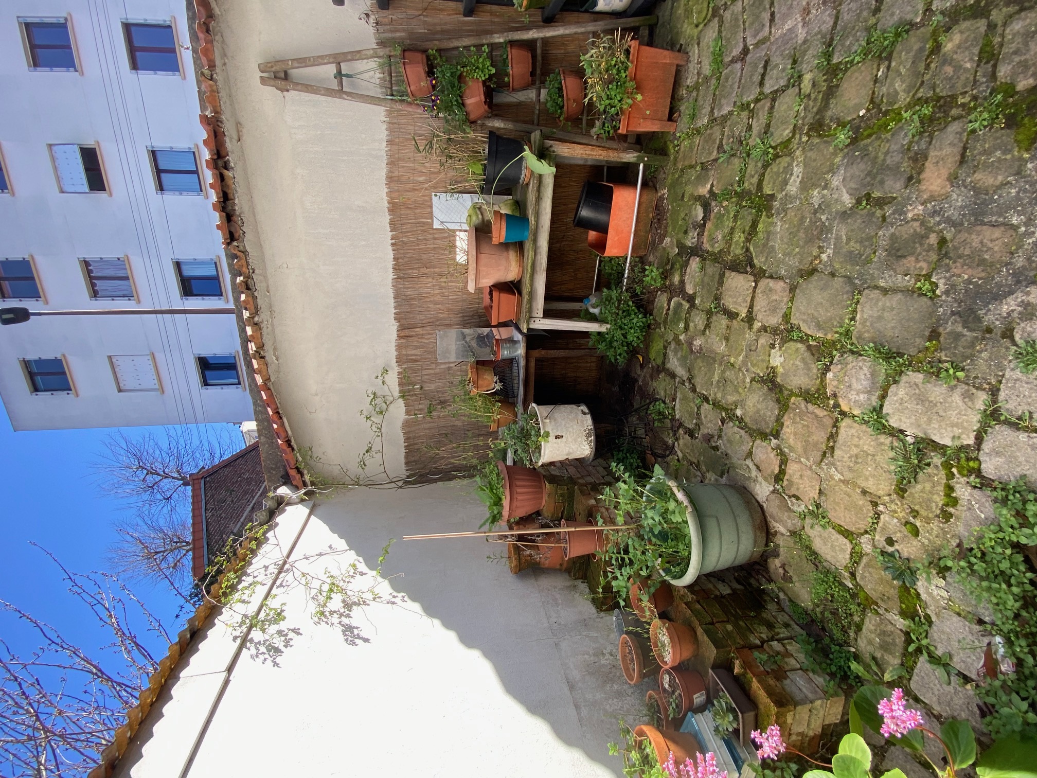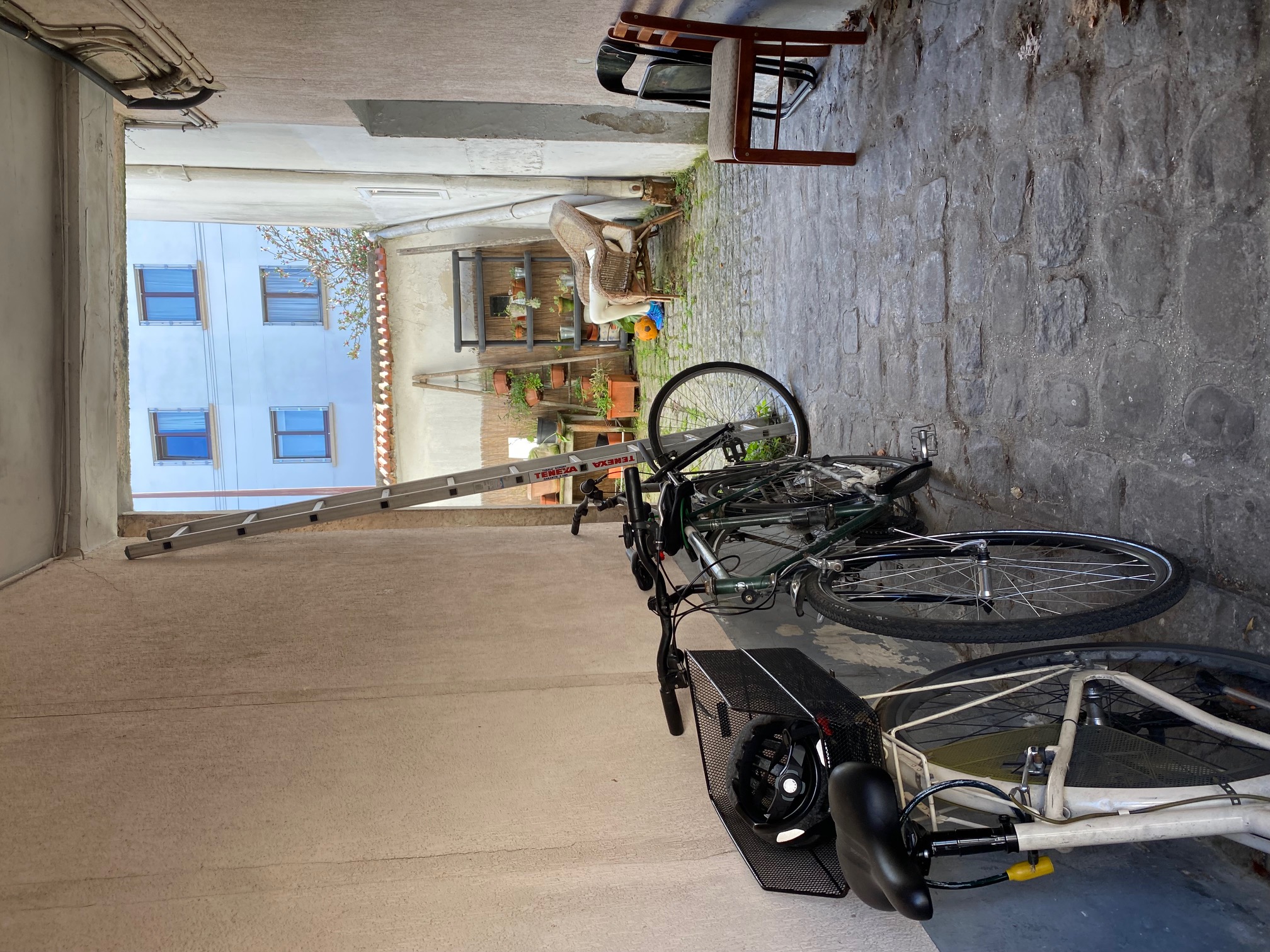 Cour commune pavée ou on peut entreposer des vélos.